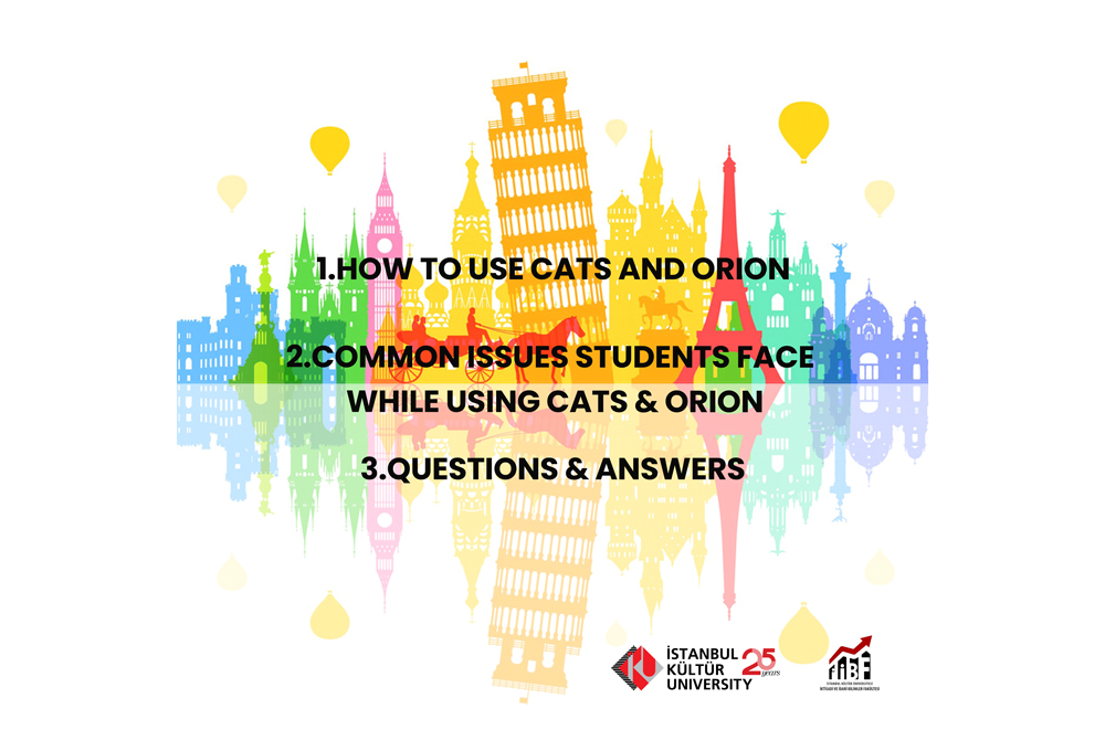 Meeting will be held on Wednesday, November 2, between 13:00 and 13:30 to inform Erasmus+ and first year International students about how they can effectively use digital platforms such as CATs and Orion. The meeting will be held at Basın Ekspres Campus, Block B, classroom 502.