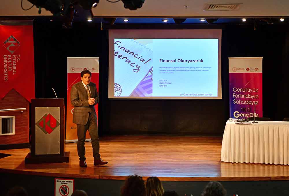 IKU Young Office organized "Financial Literacy Training" on Wednesday, January 3 at 14.00 at Önder Öztunalı Conference Hall in Bakırköy campus Ataköy building. Participating in the event as a speaker, Assist. Prof. İbrahim Ethem Tarhan, one of our academicians from the Department of Industrial Engineering, informed our students about key financial concepts such as budgeting, saving, borrowing and investing. Students who participated in the training were given a certificate of participation approved by the Republic of Türkiye Ministry of Youth and Sports.