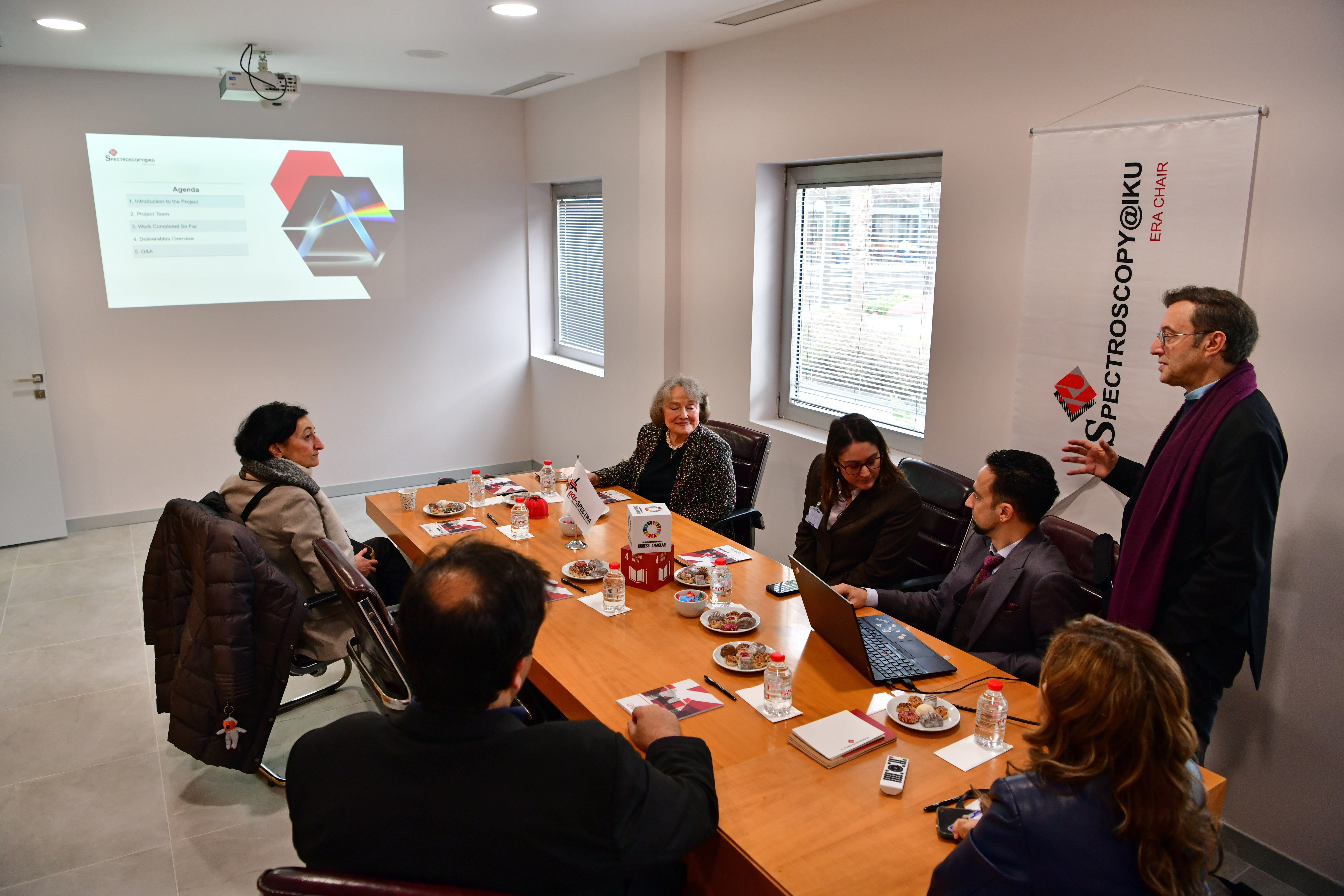 As part of the monitoring process, the recently created “IKU-SPECTRA: Physical and Natural Sciences Advanced research Center”, established as IKU unit hosting the project, was also introduced to the EU officer. The advanced research laboratories for matrix isolation spectroscopy, advanced Raman spectroscopy and  imaging, infrared and ultraviolet-visible spectroscopies, and diffraction techniques, attracted great interest.