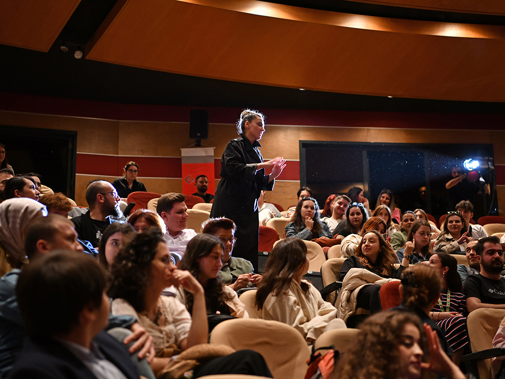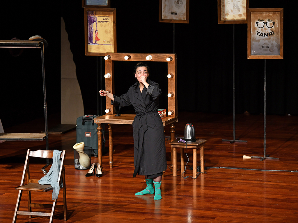 İKÜ Fine Arts Application and Research Center (GSUAM) brought together the theater play "Supporting Role", which tells the story of a female actress who cannot even be the starring role in her own life with Kültür members and theater lovers. The play, which was staged by Merve Polat at the Akıngüç Auditorium and Art Center in the Ataköy building of the Bakırköy campus at 19.00 on Thursday, April 18, 2024, received great appreciation from the audience.