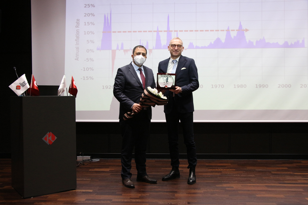 The Department of Economics held a seminar on Thursday, December 16, 2021 at the Basın Ekspres Campus Conference Hall. Tahsin Aygün, CEO of Marbling Financial Group, who attended the event as a speaker, made a presentation on the historical outlook and future projections of global inflation. The megatrends that may arise in the future in the financial markets were also discussed with the active participation of the participants.