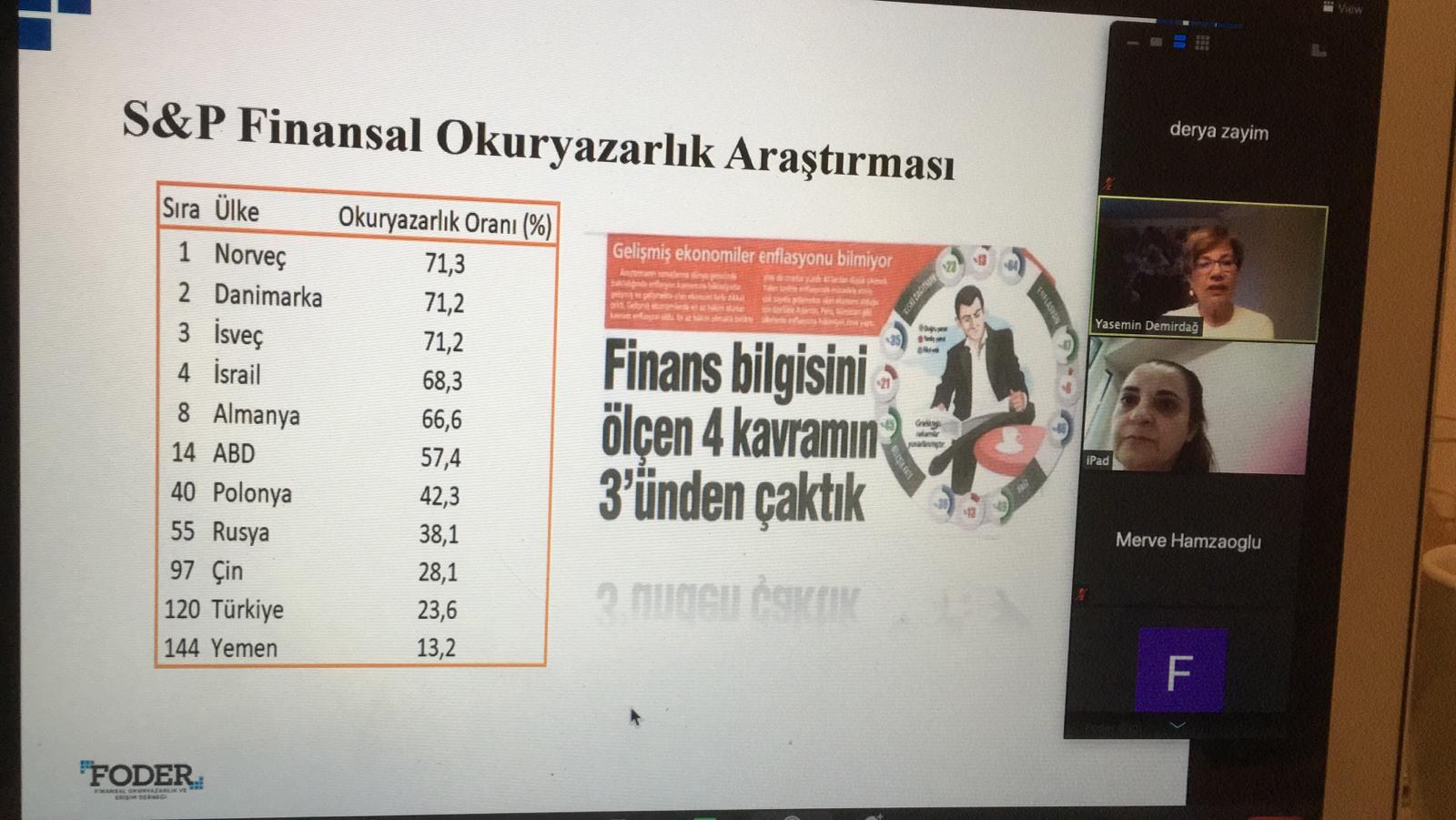 In cooperation with the Department of Economics and FODER, an e-seminar titled "Young People Knowing Their Budget" was held on the ZOOM platform on Monday, March 22, 2021, at 17:00, as part of the Global Money Week. At the event where FODER Secretary General, Dr. Yasemin Demirbağ was the speaker, issues such as budget, savings, income-expenditure balance, investment, demand-need distinction were discussed by conveying general information about financial literacy awareness and money management.