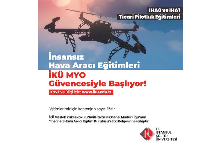 Sivil Havacılık Genel Müdürlüğü tarafından “İnsansız Hava Aracı Eğitim Kuruluşu Yetki Belgesi” T.C. İstanbul Kültür Üniversitesi Meslek Yüksekokulu'nda IHA0 ve IHA1 Ticari Pilotluk Eğitimleri nisan ayında başlıyor.