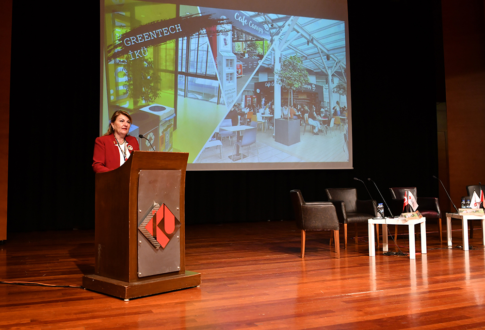 İş dünyasında sürdürülebilirlik kavramının zorunluluk haline geldiğini söyleyen Rektörü Prof. Dr. Fadime Üney Yüksektepe ise “Üniversite olarak kültür anlayışımız, stratejik planımız ve Birleşmiş Milletler Sürdürülebilir Kalkınma Hedefleri doğrultusunda bugünkü sempozyumu düzenledik. Sürdürülebilirlik bizim çok önemli bir konu. Artık bir zorunluluk haline geldi. Bu bağlamda sürdürülebilirliği devam ettirmek için ortak olarak ne çalışmalar yapabiliriz bunlara değinmek istedik ve yenilikçi teknolojilerin de katkısıyla bu alanda daha kalıcı çözümler bulmayı hedefliyoruz. Tabii bu değişimler için kurumların ve toplumun bilinçlendirilmesi ve bu değişime açık hale gelmesi çok önemli. Bugün bu iş birlikleri ve yapılan ortak çalışmalarla bu sinerjiye de katkı sunmayı hedefliyoruz. Üniversite olarak sürdürülebilirliğe hep çok önem verdik. Bu anlamda ve yaratıcı teknolojiler anlamında da birçok yatırımımız söz konusu. Bu anlamdaki marka üniversitelerden birisi olmayı hedefliyoruz. Diğer önemli nokta ise sekiz fakültemiz iki meslek yüksekokulumuz ile beraber birçok öğrenciye dokunuyoruz. Yaklaşık 16 bin öğrencimiz var. Öğrencilerin sürdürülebilirlik ve yaratıcı teknolojiler anlamında farkındalığı yüksek bireyler olarak yetişmesini, toplumumuzun ve ülkemizin gelişimi ve katkısı için de çok önemli görüyoruz. O nedenle bu alandaki çalışmalarımıza devam edeceğiz." dedi.