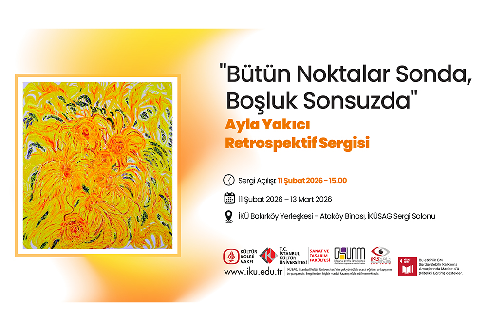 İstanbul Kültür Üniversitesi Sanat Galerisi (İKÜSAG), geçtiğimiz yıllarda kaybettiğimiz Ressam Ayla Yakıcı’nın anısına “Bütün Noktalar Sonda, Boşluk Sonsuzda” adlı retrospektif sergisine ev sahipliği yapacak. 11 Şubat 2026 Çarşamba günü saat 15.00’te açılacak sergi, bir hatırlamadan çok devamlılığı ifade etmektedir. Ayla Yakıcı’nın sanatı, ardında tamamlanmamış cümleler bırakmaz; açık alanlar, nefes alacak boşluklar ve süren bir hareket bırakır. Her nokta bir yerde durabilir, ama boşluk her zaman devam eder. Anıların, düşüncelerin ve duyguların iç içe geçerek çoğaldığı sergide, amaç sona ulaşmak değil bu yolculukta kalmaktır. Bu yolculukta resimler, bakılan bir yüzey değil deneyimlenen bir zamana dönüşür. Bütün noktalar sonda olsa bile, boşluk daima sonsuzdur.
