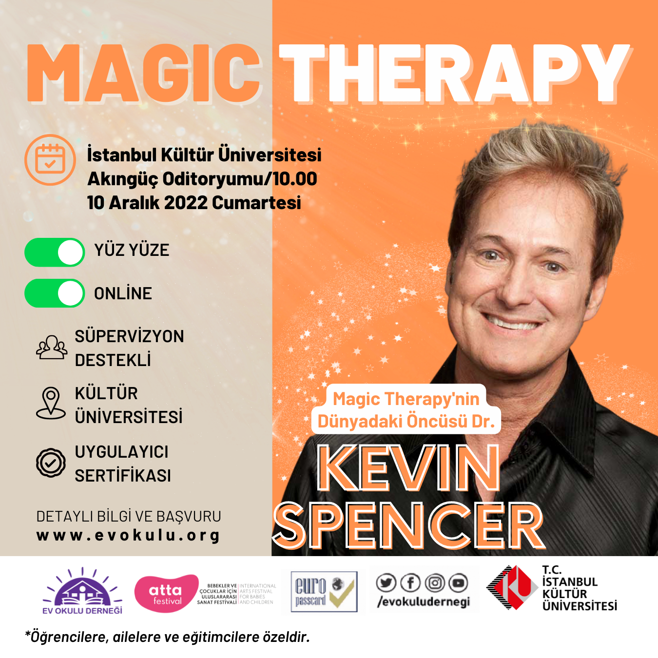 Kişiye ve duruma özel geliştirdiği terapi kapsamında danışanlarının bilişsel, motor, algısal ve sosyal gelişimlerine katkı sağlayan Spencer; illüzyon sunumuyla özel gereksinimli danışanların terapi sürecinde motivasyonlarını artırma desteği sağlıyor. Danışanları, karmaşık ve ardışık bir dizi motor beceri kazanmak için gönüllü olmaya teşvik eden, sunum kapsamında gelişim aşamalarını eğlenceli hale getiriyor. Otizm başta olmak üzere özel eğitim sürecinde ilgisi ve motivasyonu derste tutulamayan danışanları terapötik süreçte aktif kılmayı hedefleyen Dr. Kevin Spencer’ın lisanslı programı Magic Therapy™ aileler ve eğitimcilere özel iki ayrı oturumla 10 Aralık Cumartesi günü İstanbul Kültür Üniversitesi’nin ev sahipliğinde başlıyor. Etkinliğe İstanbul dışındaki katılımcılar da online olarak programa katılabilecekler.