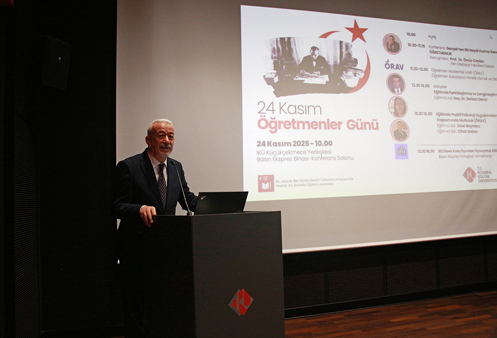 İstanbul Kültür Üniversitesi (İKÜ) Eğitim Fakültesi tarafından düzenlenen ve Sürdürülebilir Kalkınma Amaçları Madde 4 (Nitelikli Eğitim) kapsamında desteklenen 24 Kasım Öğretmenler Günü özel programı, yoğun katılım ve sıcak bir atmosfer eşliğinde gerçekleştirildi.