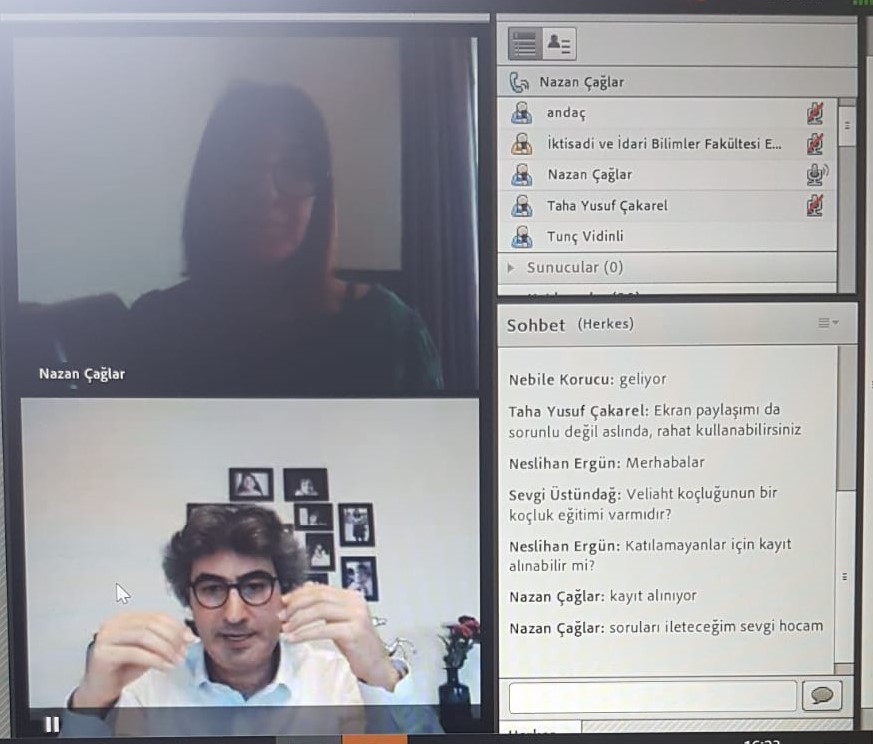 Aile İşletmeleri ve Girişimcilik Uygulama ve Araştırma Merkezi (AGMER) tarafından düzenlenen “AGMER Webinar Serisi (Bireysel ve Kurumsal Dayanıklılık)”nin ilki, 26 Nisan Pazar günü saat 16.00’da “Aile İşletmelerinde Veliaht Koçluğu” başlığı ile Adobe Connect Sanal Sınıf Uygulaması üzerinden gerçekleştirildi. Veliaht Koçu Tunç Vidinli’nin konuşmacı olduğu etkinlikte; aile şirketlerinde devir sorunları, devralacak yöneticinin hazırlanması ve yeni nesillere aktarımda yapılması gerekenler öğrencilere aktarıldı.