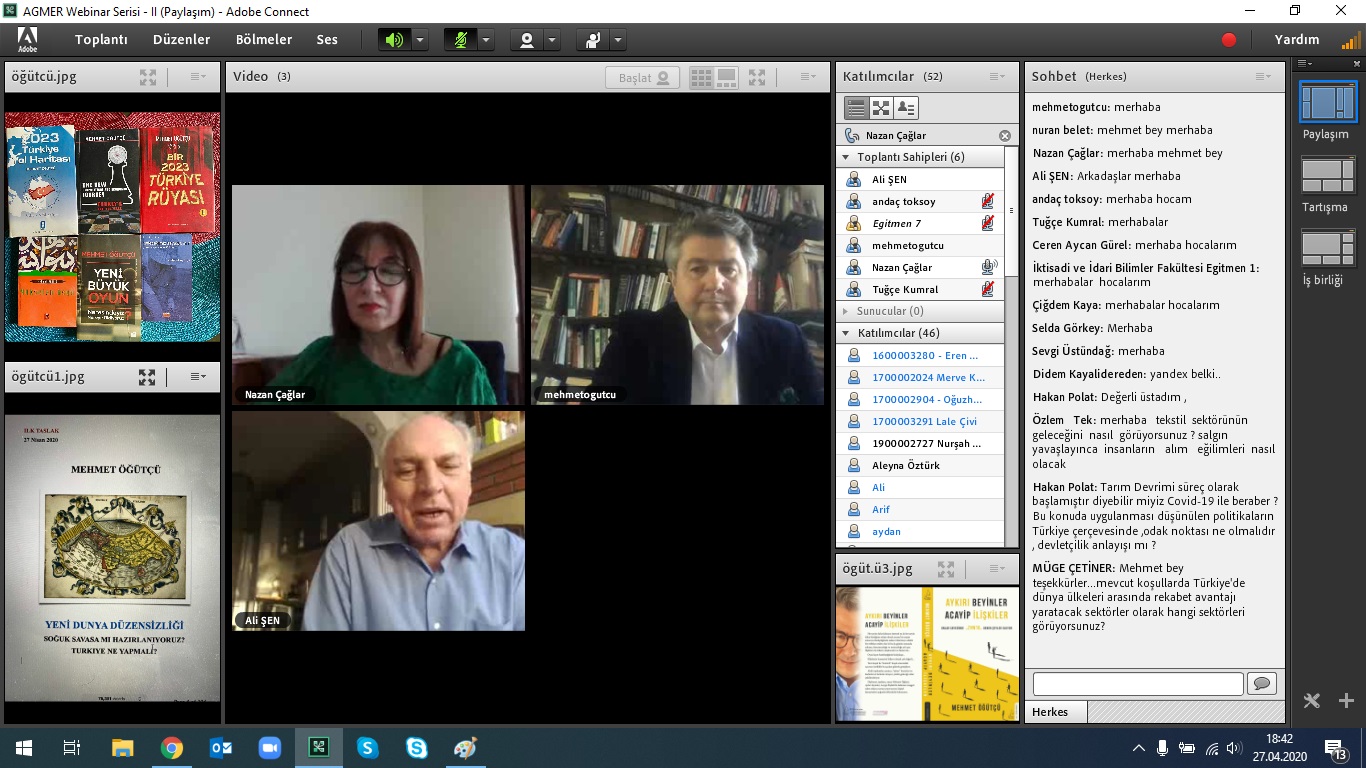 Aile İşletmeleri ve Girişimcilik Uygulama ve Araştırma Merkezi (AGMER) tarafından düzenlenen “AGMER Webinar Serisi (Bireysel ve Kurumsal Dayanıklılık)”nin ikincisi, 27 Nisan Pazartesi günü saat 18.00’de “Korona Sonrasında Yeni Bir Dünya Düzeni Doğar mı? Türkiye Nasıl Hazırlanmalı?” başlığı ile Adobe Connect Sanal Sınıf Uygulaması üzerinden gerçekleştirildi. Global Resources Partnership, London Energy Club ve Bosphorus Energy Club Başkanı Mehmet Öğütçü’nün Londra’dan konuşmacı olarak katıldığı etkinliğin moderatörlüğünü İktisadi ve İdari Bilimler Dekanı Prof. Dr. Ali Şen ile AGMER Müdürü Dr. Öğr. Üyesi Nazan Çağlar üstlendiler. Yoğun katılım ile gerçekleştirilen webinarda; “Yeni Normal”, “Küresel! Dünya”, “Ülkeler Arası Stratejik Hareketler”, “Doğal Kaynaklar”, “Türkiye’nin Süreçteki Rolü” gibi konular tartışıldı. Mütevelli Heyet Başkanımız Dr. Bahar Akıngüç Günver de etkinliğe katılarak AGMER ekibine teşekkürlerini iletti. AGMER Müdürü Dr.Öğr.Üyesi Nazan Çağlar, serinin 3 Mayıs Pazar günü Avukat Oğuz Kara’nın konuşmacı olacağı "Aile Şirketlerinde Dayanıklılığı Etkileyen Hukuki Süreçler" webinarı ile devam edeceğini belirtti.