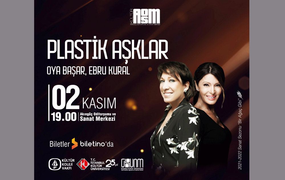 Akıngüç Oditoryumu ve Sanat Merkezi, bu yılın ilk etkinliğinde “Plastik Aşklar” tiyatro oyunu ile sanatseverleri ağırlayacak. Usta tiyatrocu Oya Başar’ın sahneyi başarılı oyuncu Ebru Kural ile paylaşacağı oyun, 2 Kasım Salı günü saat 19.00’da başlayacak. Bu yıl “Bir Ağaç Gibi” başlığıyla sanatın özgürleştirici ve kardeşcesine birleştirici yönüne vurgu yapıldığı sanat sezonunda, birçok farklı etkinlik sanatseverlerle buluşmaya devam edecek.