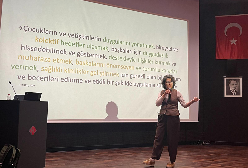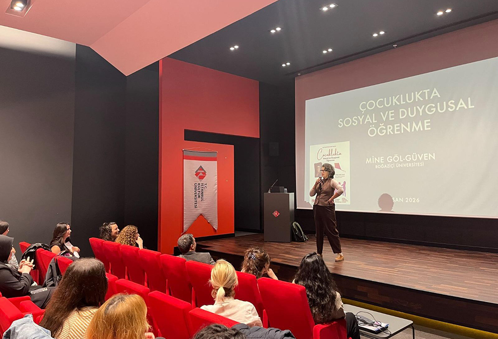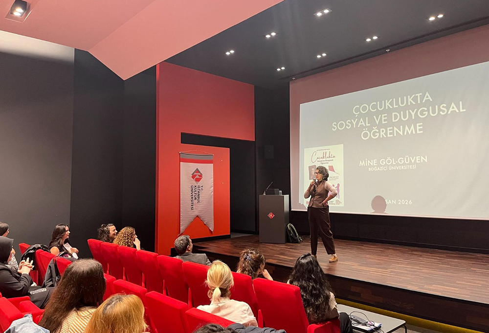Eğitim Fakültesi Temel Eğitim Bölümü tarafından, 8 Nisan 2026 Çarşamba günü saat 10.00’da “Çocuklukta Sosyal ve Duygusal Öğrenme” başlıklı etkinlik düzenlendi. Eğitim Fakültesi öğrencilerinin katılımıyla gerçekleştirilen etkinliğe, Boğaziçi Üniversitesi öğretim üyesi Doç. Dr. Mine Göl Güven konuşmacı olarak katıldı.