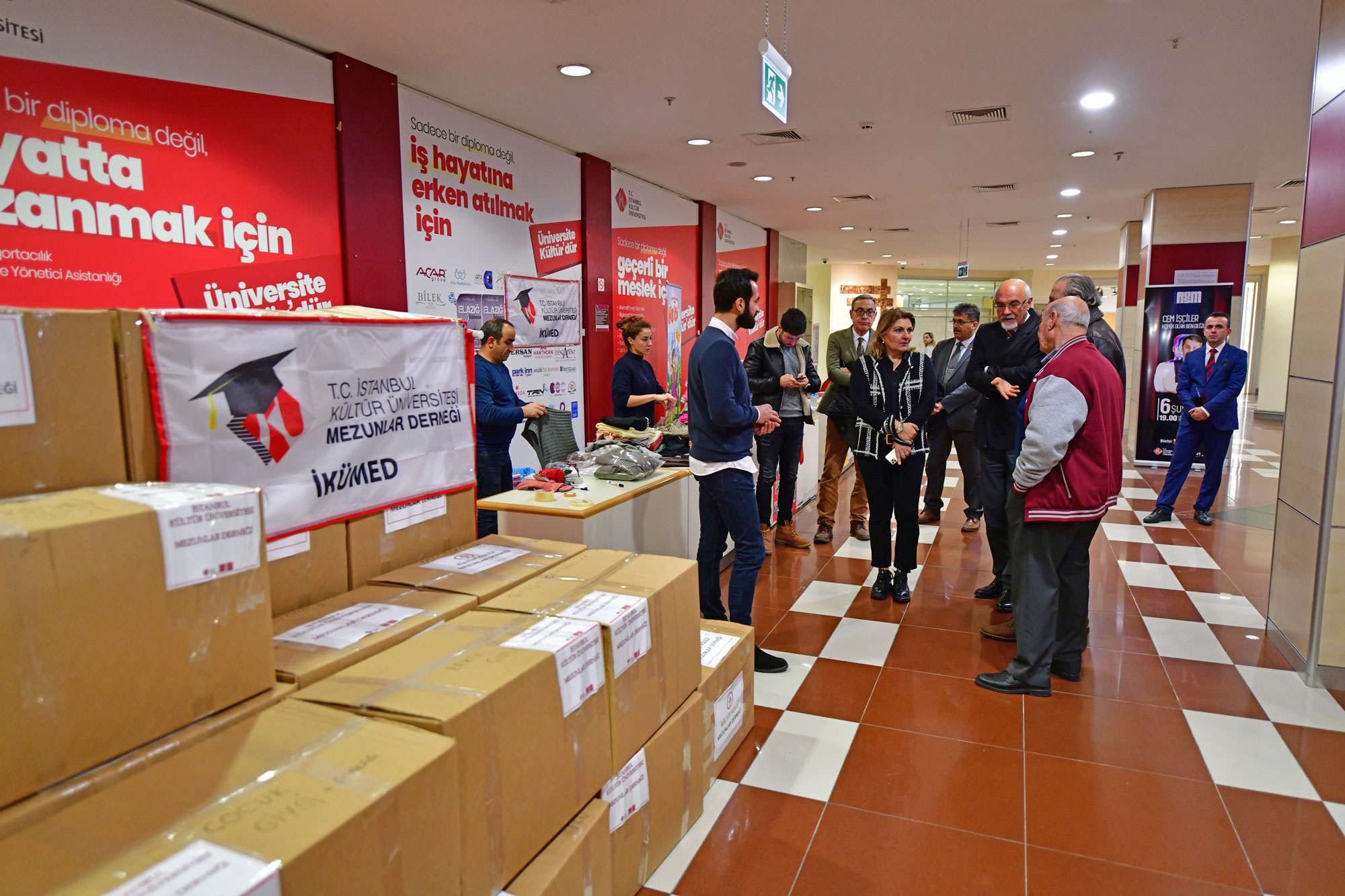 İstanbul Kültür Üniversitesi (İKÜ), Elazığ’ın Sivrice ilçesinde 24 Ocak Cuma günü meydana gelen 6,8 büyüklüğündeki depreme sessiz kalmadı. Kültür Koleji Mezunlar Derneği (KÜMED) ile İstanbul Kültür Üniversitesi Mezunları ve Mensupları Derneği (İKÜMED) iş birliğinde, “Elazığ Üşümesin” isimli bir yardım kampanyası düzenlendi. İKÜ Ataköy yerleşkesinde açılan stantlarda 29 Ocak Çarşamba gününe kadar toplanan yardımlar, ihtiyaç sahiplerine ulaştırılmak üzere AFAD İstanbul İl Afet ve Acil Durum Müdürlüğü’ne teslim edildi. Battaniye, giysi, çocuk bezi, ayakkabı/bot, oyuncak, kırtasiye malzemeleri, kuru gıda, konserve vb. ürünlerden oluşan yardımlar, 1 Şubat Cumartesi günü Elazığ’a ulaştırılarak dağıtımı yapıldı. Destek olan herkese çok teşekkür ederiz.