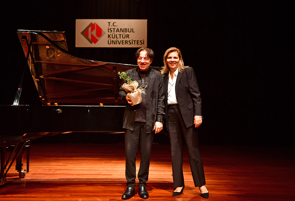 Alkışlarla sona eren konserin ardından, Mütevelli Heyet Başkan Yardımcımız & İstanbul Kültür Eğitim Kurumları Yönetim Kurulu Başkanı Ful Akıngüç tarafından Fazıl Say’a çiçek takdim edildi.