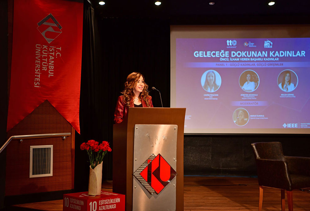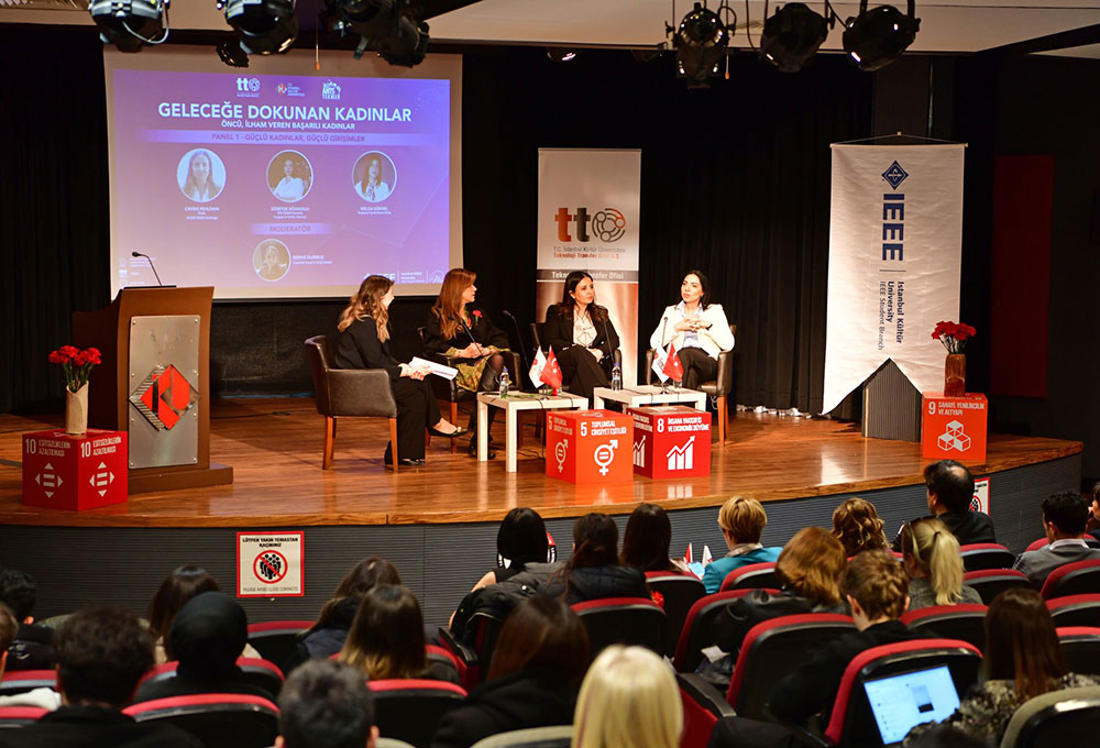 İKÜANTS TEKMER ve İKÜ IEEE Kulübü iş birliğinde, 7 Mart Cuma günü saat 10.00'da Bakırköy yerleşkesi Ataköy binasındaki Önder Öztunalı Konferans Salonu'nda "Geleceğe Dokunan Kadınlar" başlıklı etkinlik düzenlendi. "8 Mart Dünya Kadınlar Günü" kapsamında organize edilen etkinlikte, "Güçlü Kadınlar, Güçlü Girişimler" ve "Ar-Ge ve İnovasyonda Kadın Liderler" başlıklı paneller gerçekleştirildi.