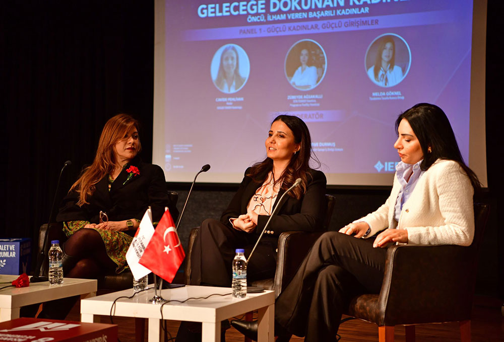 "Güçlü Kadınlar, Güçlü Girişimler" başlıklı panelde, iş dünyasında ve girişimcilikte iz bırakan kadın liderler bir araya geldi. Tasalanma Tasarla Kurucu Ortağı Melda Göknel, KOSGEB Tekmerler Müdürü Cavide Pehlivan ve Bilgiyi Ticarileştirme Merkezi'nden Zübeyde Ağsakallı deneyimlerini paylaştılar.