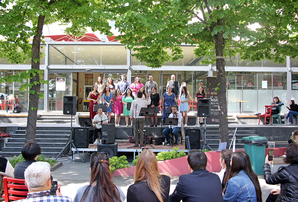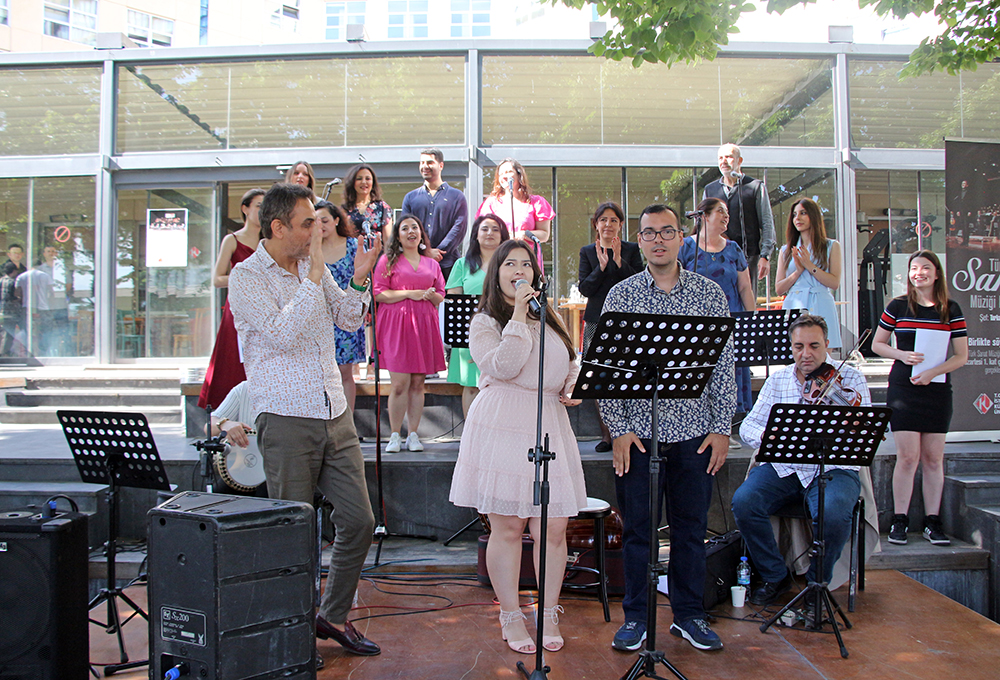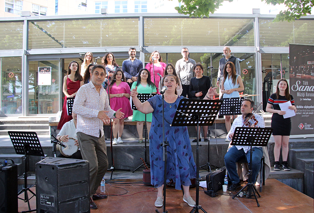 İKÜ Gösteri Sanatları Kulübü Danışmanı Dr. Öğr. Üyesi Gülnur Işıklar ile İKÜ Türk Sanat Müziği Korosu Şefi Tarkan Öngen’in iş birliğinde düzenlenen “Müzik Şöleni” etkinliğine, 20 Mayıs Pazartesi günü Bakırköy yerleşkesi Ataköy binası arka bahçe ev sahipliği yaptı. İKÜ akademik/idari kadrosu ile öğrencilerin yoğun ilgisiyle gerçekleştirilen “Birlikte Söylüyoruz” etkinliğinde, koromuz dinleyicilere eğlenceli ve keyifli anlar yaşattı.