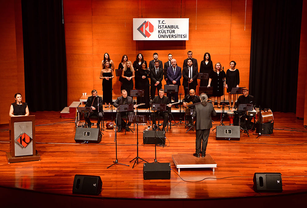 İKÜ Türk Halk Müziği Korosu, 19 Aralık Perşembe günü saat 20.00’de Akıngüç Oditoryumu ve Sanat Merkezi’nde dinleyicilere unutulmaz bir halk müziği akşamı yaşattı. Türk halk müziğinin farklı yörelerinden eserlerin dinleyicilerle buluştuğu gecenin sunuculuğunu Elif Ertürk üstlendi. Şef Bülent Kılıçaslan’ın yönetimindeki koro, zengin bir repertuar ile dinleyenlere ezgilerin kültür mirasını bir kez daha hatırlattı. “Ey Sevdiğim Sana Şikâyetim Var”, “Yazımı Kışa Çevirdin”, “Yüce Dağ Başında Yanar Bir Işık”, “Giresun’un İçinde” gibi eserlerin seslendirildiği gece, “İndim Dere Irmağına” parçası ile coşkulu bir şekilde sona erdi. Yoğun katılımın olduğu konser, birçok halk müziği severi bir araya getirdi.