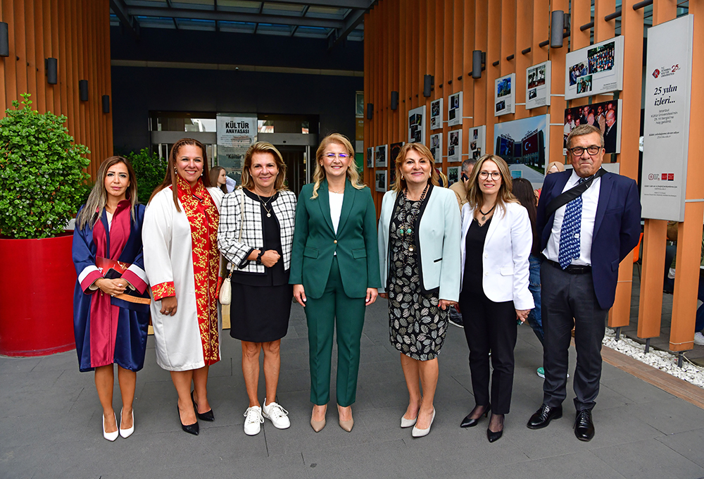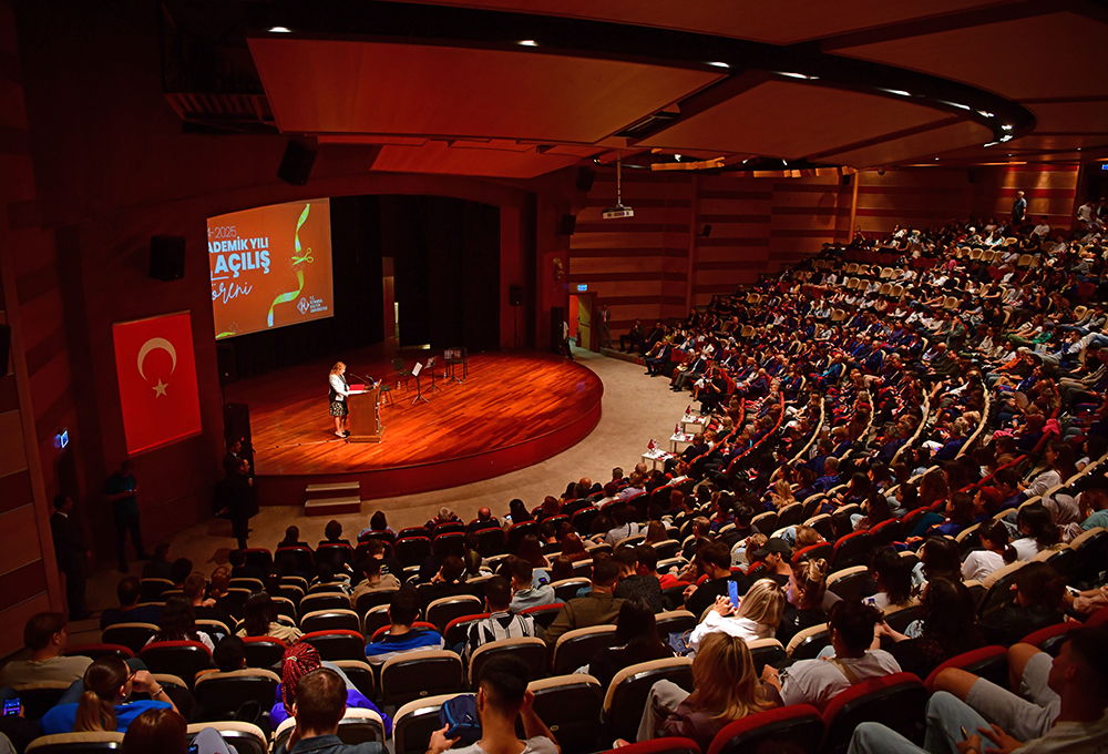 Bakırköy Belediye Başkanı Doç. Dr. Ayşegül Özdemir Ovalıoğlu'nun davetli olduğu tören, Saygı Duruşu ve İstiklal Marşı'nın okunması ile başladı. Törenin açılışında konuşan Rektörümüz Prof. Dr. Fadime Üney Yüksektepe, "Üniversitemizin yeni akademik yıl açılış törenine hoş geldiniz. Yeni akademik yıl açılışı, her başlangıç gibi bizlere umut ve heyecan veren bir gelişme. Bugün burada bu heyecanı paylaşıyor olmaktan onur duyuyoruz. Bugün itibarıyla üniversite eğitimine başlayan sevgili öğrencilerimiz ve mesleğine adım adım ilerleyen tüm genç arkadaşlarımız, üniversite eğitiminiz elbette öncelikle bireysel refahınızın temeli için çok kıymetli. Ancak diplomanızın temeli olan akademik birikiminiz ve etik değerlerinizle alacağınız her karar kimi zaman bir çocuğa, kimi zaman bir ağaca, kimi zaman insan yararına bir buluşa dokunacak ya da bir diyaloga ilham olacak. Kültür Ailesi'nin bir parçası olan değerli akademik ve idari kadromuz, üniversite deneyimini gençlere en güçlü şekilde kazandırmak adına gösterdiğiniz çaba için sizlere teşekkür ediyorum. Bu yıl üniversitemiz, bildiğiniz üzere dört temel başlığı daha süreçlerine ekledi. İlki, Ufuk Avrupa Çerçeve Programı (HORIZON) kapsamında başvurduğumuz ve ülkemizde desteklenen ilk proje olmaya hak kazanan “Spectroscopy@IKU” projemiz. Üniversitelerinin bilimsel anlamda gelişmesini hedefleyen ERA Chairs çağrısı kapsamında kabul alan projemizin ERA Kürsü Başkanı Prof. Dr. Rui Fausto ve Rektör Yardımcımız ERA Kürsü Koordinatörü Prof. Dr. Gülce Öğrüç Ildız başta olmak üzere proje ekibinde görev alan çalışma arkadaşlarımı bir kez daha kutluyor başarılarının devamını diliyorum.