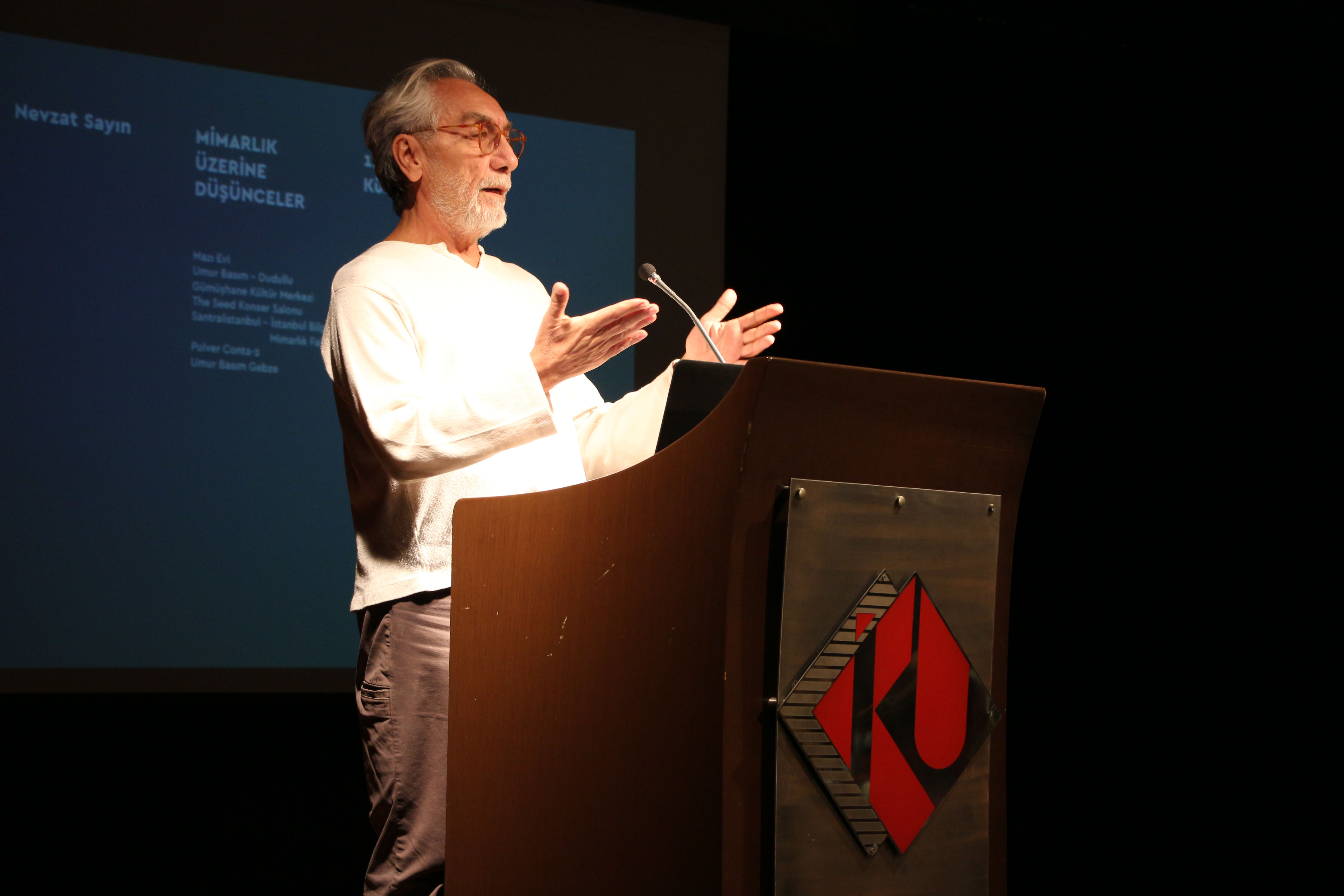İstanbul Kültür Üniversitesi, Mimarlık Fakültesi, Mimarlık Bölümü 2018-2019 Akademik Yılı Mimarlık Konuşmaları’nın 55.sinde “Mimarlık Üzerine Düşünceler” başlıklı konferans ile Y. Mimar Nevzat Sayın’ı ağırladı.Ataköy Yerleşkesi Önder Öztunalı Salonu’nda 12 Kasım 2018 Pazartesi günü düzenlenen etkinlikte Y. Mimar Nevzat Sayın, gerçekleştirdiği projelerdeki deneyimini: Projeye nasıl başlarız? Nasıl tasarlarız? Tasarımımızı etkileyen kriterler nelerdir? Nasıl inşa ederiz? sorularına cevap arayarak katılımcılara aktardı.