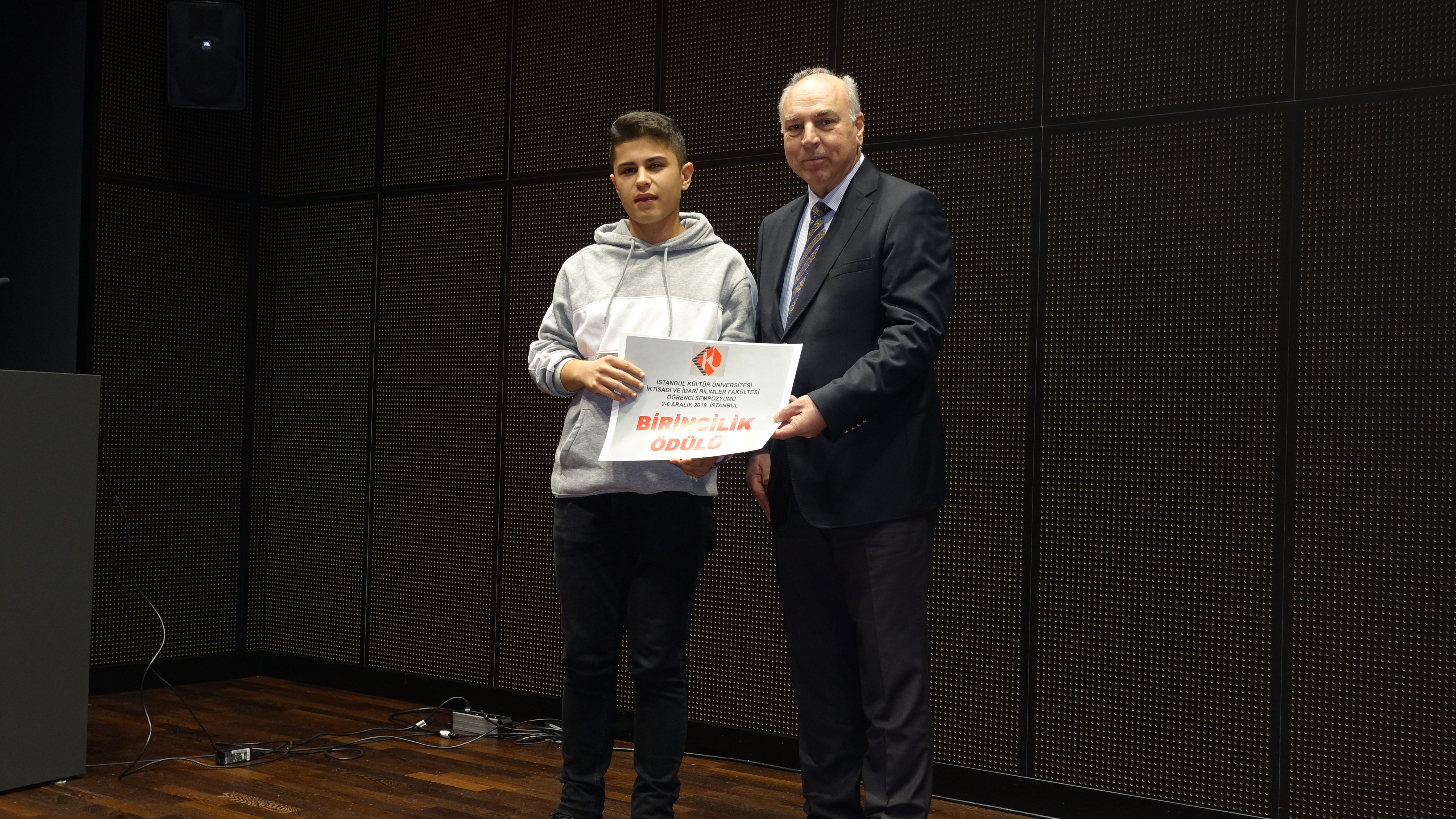 2.lik ödülünü ise Uluslararası Ticaret Bölümü öğrencilerimizden Ayşenur Erdoğan ile Efecan Zaim elde etti. Öğrencilerimize madalyalarını Prof. Dr. Mahmut Paksoy verdi.