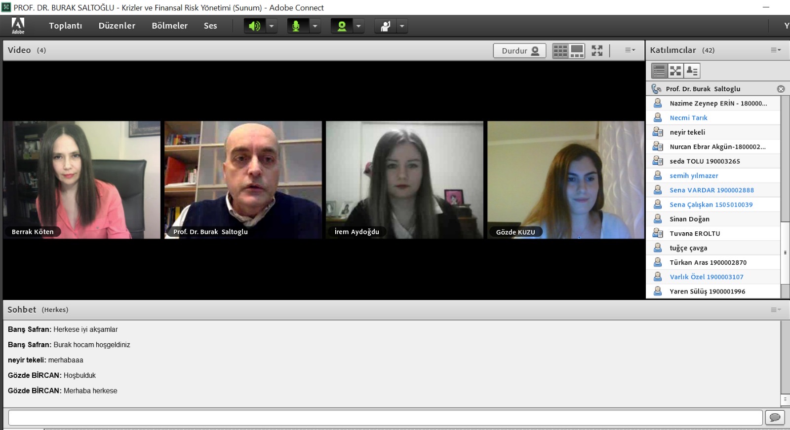 “Krizler ve Finansal Risk Yönetimi” başlıklı e-seminerde konuşan Prof. Dr. Burak Saltoğlu, COVID-19 süreci öncesi-sonrasındaki ülkelerde ve işletmelerde risk ile kriz yönetimi hakkında kapsamlı bilgiler verdi. Küresel krizlerin sonucunda bazı değişimler olduğuna dikkat çeken Saltoğlu, dünyadan ve Türkiye’den geçmiş krizlerden çıkarılan dersler ile önümüzdeki süreçteki makro beklentiler; makro büyüme tahminleri, işsizlik, nitelikli istihdam politikaları, şirketlerin finansal riskleri, iş dünyasının alışkanlıkları hakkında konuştu.