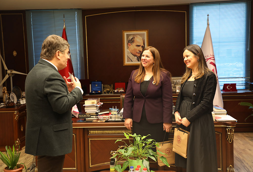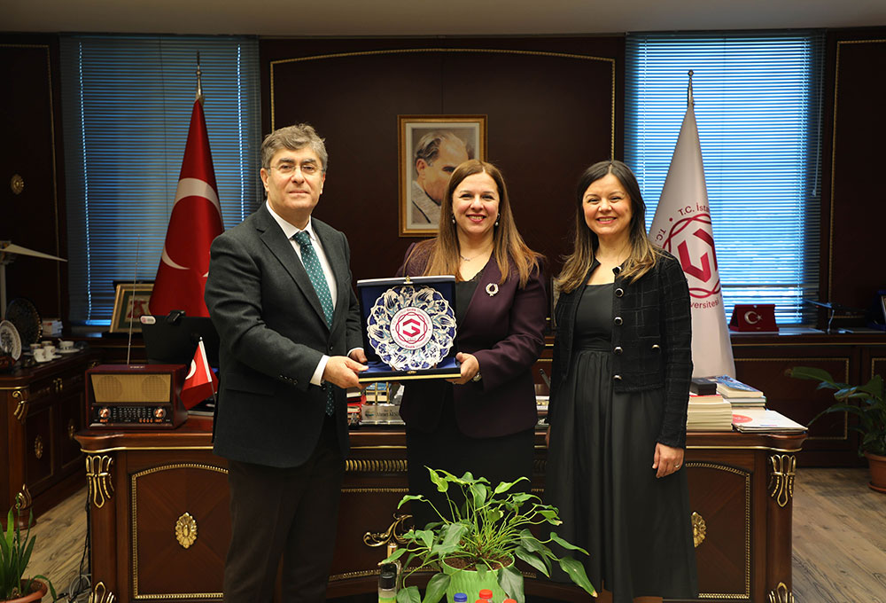 Rektörümüz Prof. Dr. Fadime Üney Yüksektepe ile Rektör Yardımcımız Prof. Dr. Burcu Yavuz Tiftikçigil; 5 Mart Çarşamba günü İstanbul Gedik Üniversitesi Rektörü Prof. Dr. Ahmet Kesik'i makamında ziyaret ederek, ikili iş birlikleri hakkında görüşme gerçekleştirdiler.