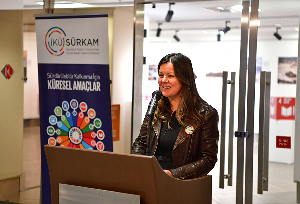 İstanbul Kültür Üniversitesi Sürdürülebilir Kalkınma Merkezi (İKÜ SÜRKAM) ile Güzel Sanatlar Uygulama ve Araştırma Merkezi iş birliğinde düzenlenen “Sürdürülebilir Şehirlerin Kültürel Hafızası” sergisi, 14 Mayıs 2025 Çarşamba günü İKÜSAG Sergi Salonu’nda açıldı. Serginin açılış konuşmaları, Rektörümüz Prof. Dr. Fadime Üney Yüksektepe ile Rektör Yardımcımız & SÜRKAM Koordinatörümüz Prof. Dr. Burcu Yavuz Tiftikçigil tarafından yapıldı.