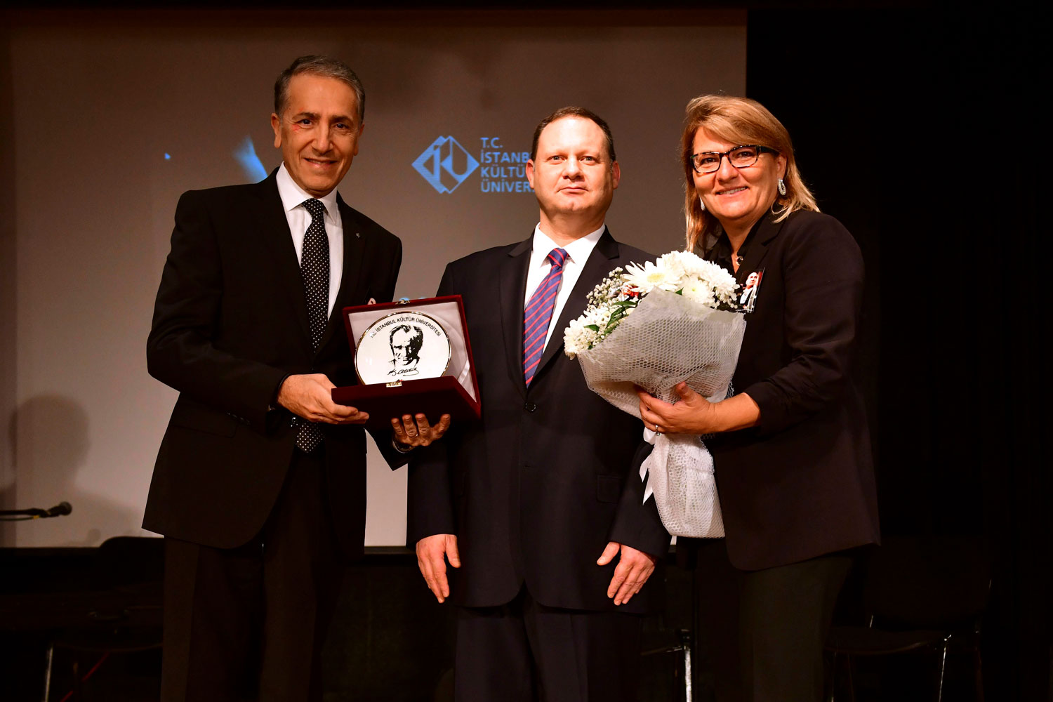 İstanbul Kültür Üniversitesi Mütevelli Heyet Başkanı Dr. Bahar Akıngüç Günver, İstanbul Kültür Üniversitesi Rektörü Prof. Dr. Erhan Güzel, Rektör Yardımcısı Prof. Dr. Nihal Sarıer, dekanlarımız, akademik-idari personel ve öğrencilerimizin katıldığı törende; İKÜ İşaret Dili Korosu’nun eşliğinde okunan İstiklal Marşı’nın ardından Tarihçi&Türkolog Dr. Sayın Ali Suat Ürgüplü “Neden Atatürk?” başlıklı konuşmasını gerçekleştirdi.