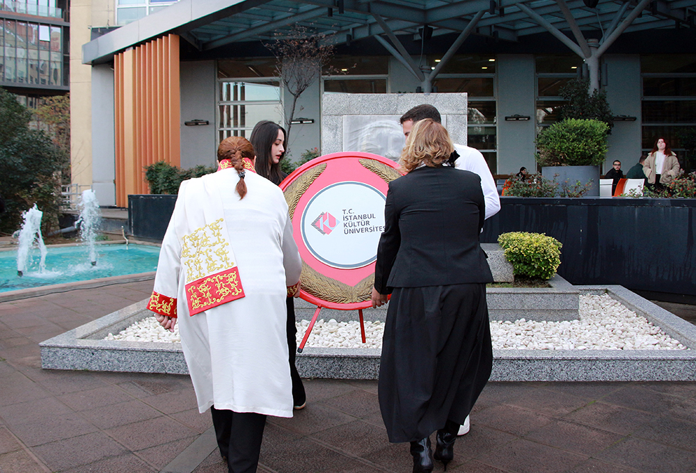 İstanbul Kültür Üniversitesi (İKÜ), Ulu Önder Mustafa Kemal Atatürk’ü ebediyete intikalinin 87. senesinde düzenlediği tören ile andı. 10 Kasım Pazartesi günü saat 09.05'te Bakırköy yerleşkesi Ataköy binası ön bahçede gerçekleştirilen törene; Mütevelli Heyet Başkanımız Dr. Bahar Akıngüç Günver, Rektörümüz Prof. Dr. Fadime Üney Yüksektepe, Rektör Yardımcılarımız, Genel Sekreterimiz Ender Rıza Ekici, dekanlarımız, akademik-idari kadromuz ve öğrencilerimiz katıldı.