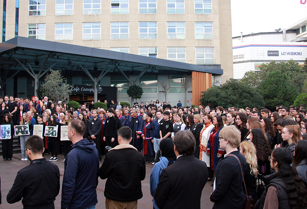 Mütevelli Heyet Başkanımız Dr. Bahar Akıngüç Günver ile Rektörümüz Prof. Dr. Fadime Üney Yüksektepe'nin Atatürk büstüne çelenk takdimi ile başlayan tören, Saygı Duruşu ve İstiklal Marşı'nın okunmasıyla sona erdi.