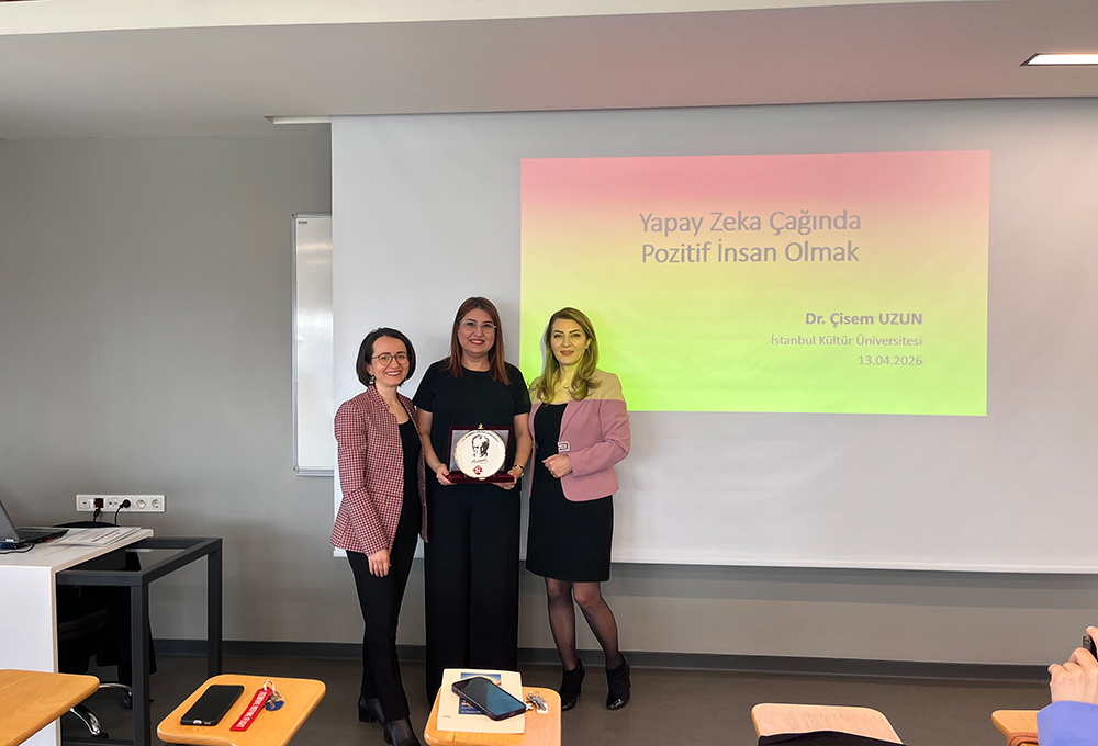 Nis 13 2026 0 By admin Eğitim Bilimleri Bölümü tarafından, 13 Nisan 2026 Pazartesi günü Dr. Çisem Uzun’un konuşmacı olarak katıldığı "Yapay Zeka Çağında Pozitif İnsan Olmak" başlıklı seminer gerçekleştirildi.
