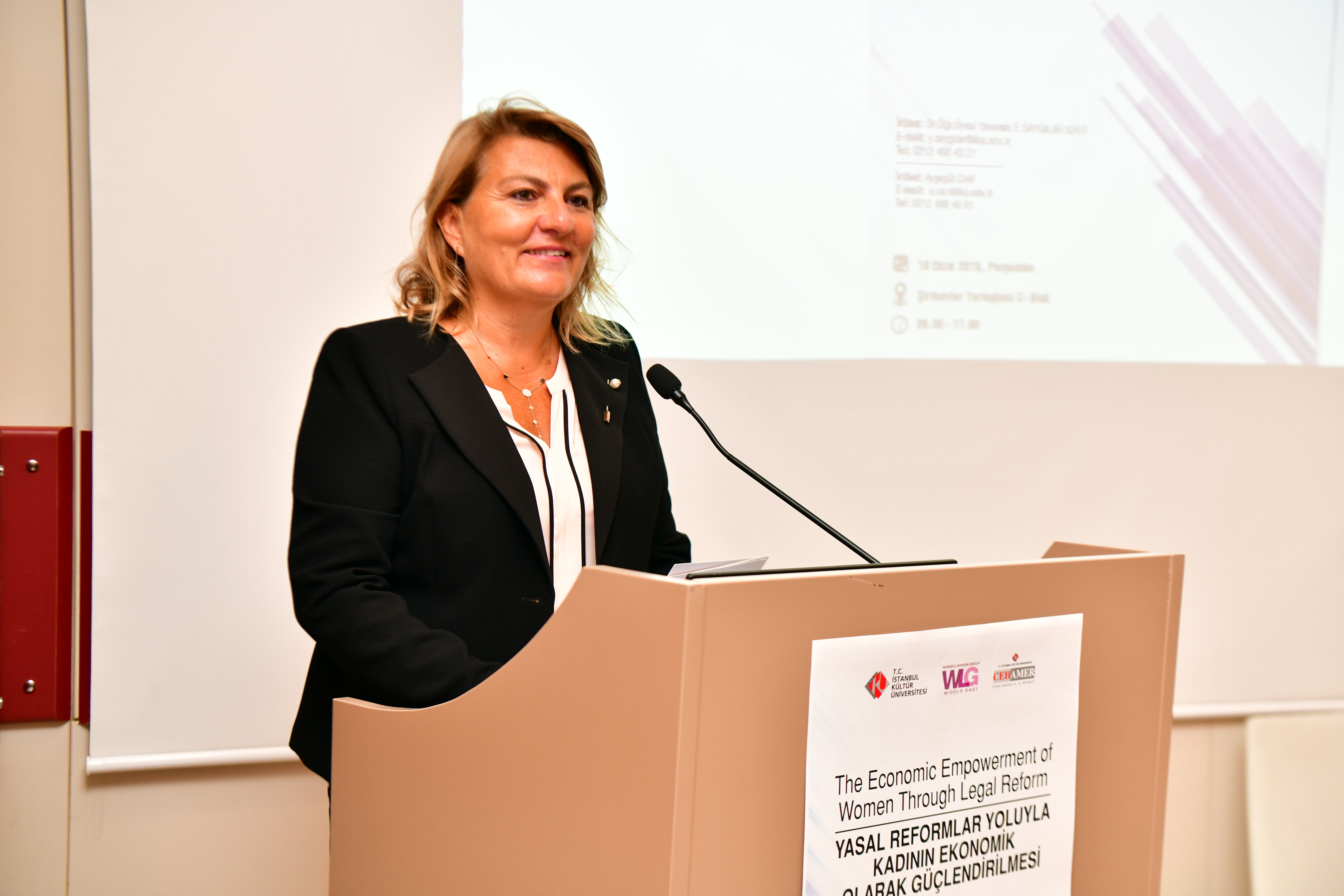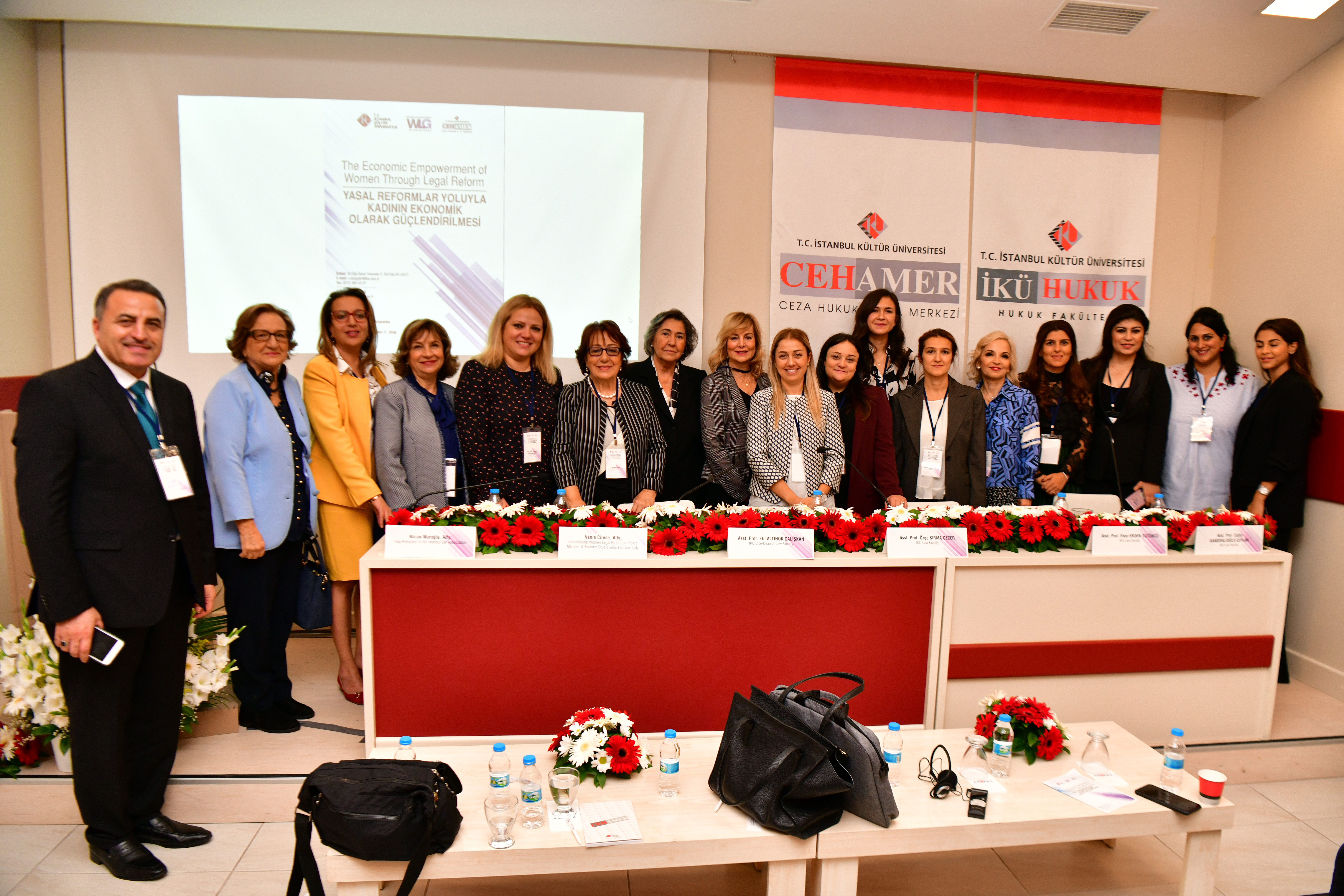 İstanbul Kültür Üniversitesi Hukuk Fakültesi, Ceza Hukuku Uygulama ve Araştırma Merkezi (CEHAMER) ve Ortadoğu Kadın Hukukçular Grubu iş birliğinde uluslararası “Yapısal Reformlar Yoluyla Kadının Ekonomik Olarak Güçlendirilmesi” sempozyumu düzenlendi. Şirinevler yerleşkemizin ev sahipliği yaptığı sempozyuma; Ticaret Bakan Yardımcısı Rıza Tuna Turagay, İKÜ Mütevelli Heyet Başkanı Dr. Bahar Akıngüç Günver, İKÜ Rektörü Prof. Dr. Erhan Güzel, İKÜ Hukuk Fakültesi Dekanı Prof. Dr. Dr. h.c. mult. Bahri Öztürk, Almanya ve İngiltere’nin yanı sıra Cezayir, Fas, Abu Dabi, Irak gibi MENA ülkelerinden de 20 temsilci ile öğretim üyeleri ve öğrenciler katıldı.